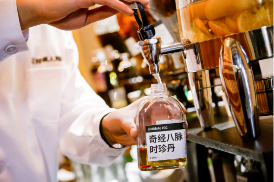 这间坐落于理智与非理智临界点的“中贰药房”是个老字号,早年间尝遍世间奇草异药,收纳各类珍惜药材,以精准对症拟方下药得名。此次,中贰药房与北京地标性酒吧PH联合运营,研制中西合璧的专属药方。通过参考科技大数据的灵魂拷问,观众将自测病症,并根据测试结果在中贰药房抓取药材,领取以古方美酒特调的对症“解药”,治愈挑剔的味蕾的同时,治愈你的身心。众多大神级秘方鸡尾酒只能在正经疯人院的中贰药房才能喝到。